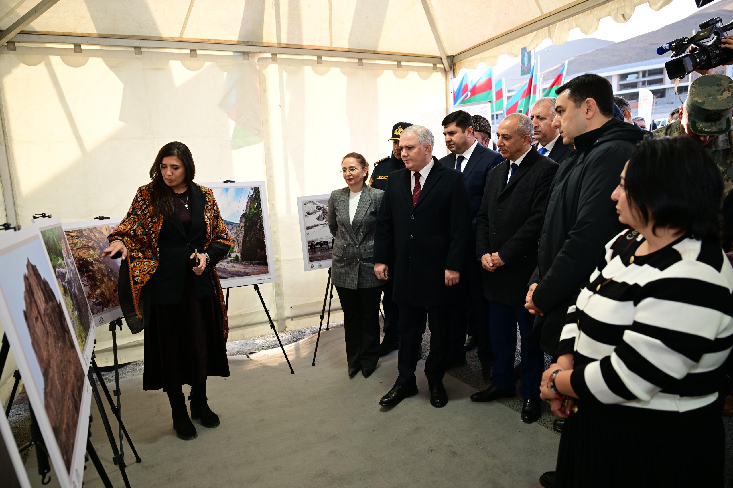 Mədəniyyət naziri Adil Kərimli, Kəlbəcər rayonunda Azərbaycan Respublikası Prezidentinin xüsusi nümayəndəsi Bəşir Hacıyev, digər rəsmilər və şəhər sakinləri sərgilərlə tanış olublar.