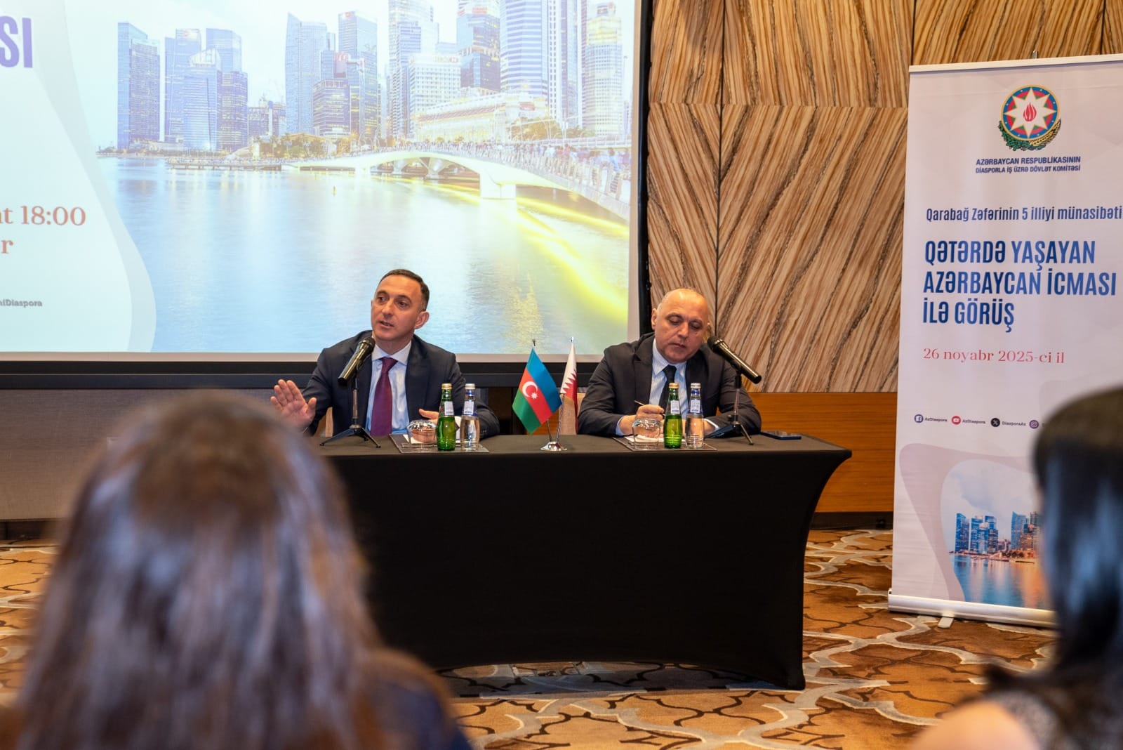 Azərbaycan Respublikasının Qətərdəki Səfirliyinin müşaviri Eldəniz Musayev çıxış edərək Qarabağ Zəfərinin Azərbaycan xalqının tarixinə qızıl hərflərlə yazıldığını söyləyib. O, Qətərdə yaşayan Azərbaycan icmasının birliyinin qarşılıqlı etimad, dostluq və ortaq maraqlara əsaslandığını deyib.