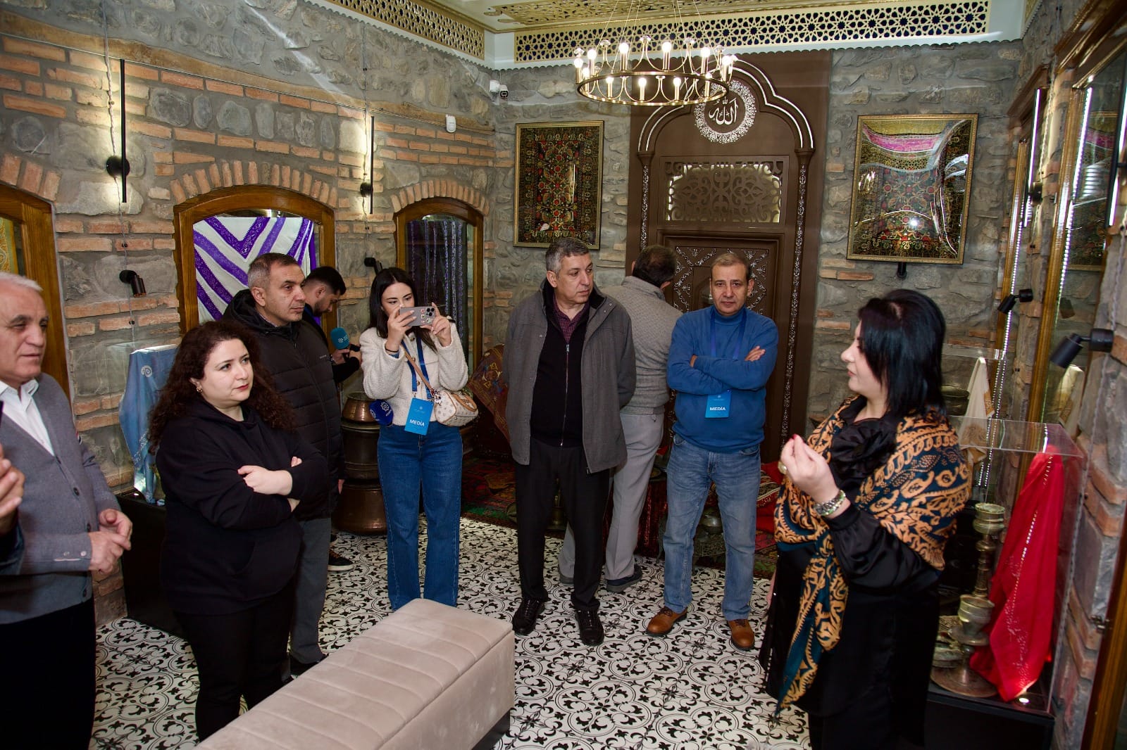 Mediatur çərçivəsində jurnalistlər sahibkar Sevinc Bayramovaya məxsus “Süsən” istehsalat müəssisəsində də olublar. Media mənsublarına “Süsən” brendi ilə istehsal olunan kəlağayılar, onların çeşidi, daxili və xarici bazarda tələbat, turistlərin bu məhsul növünə marağı barədə məlumat verilib.