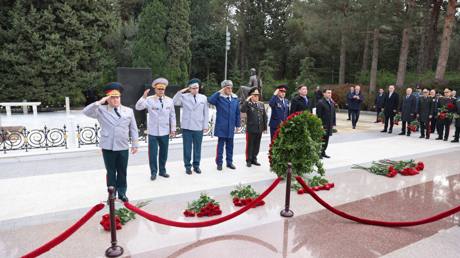 Sonra Şəhidlər xiyabanı ziyarət edilib, Azərbaycanın müstəqilliyi və ərazi bütövlüyü uğrunda canlarından keçmiş qəhrəman Vətən övladlarının məzarları üzərinə gül dəstələri düzülüb, “Əbədi məşəl” abidəsi önünə əklil qoyulub.