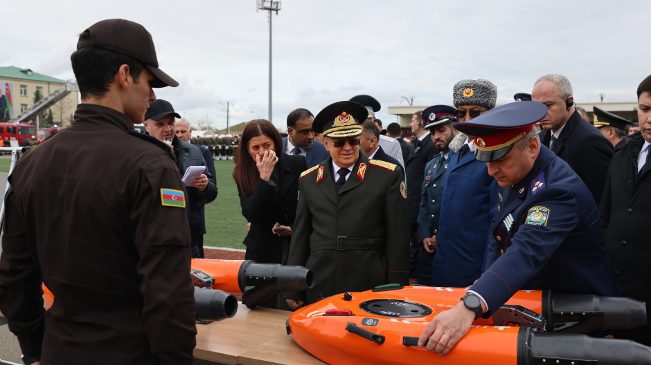 Sonra mərasim iştirakçıları Fövqəladə Hallar Nazirliyinin Akademiyasında Nazirliyin xüsusi texnikalarından ibarət sərgi ilə tanış olublar. Sərgidə Azərbaycan FHN-in strukturuna daxil olan qurumların istifadəsində olan ən müasir texnika və avadanlıqlar nümayiş olunub.