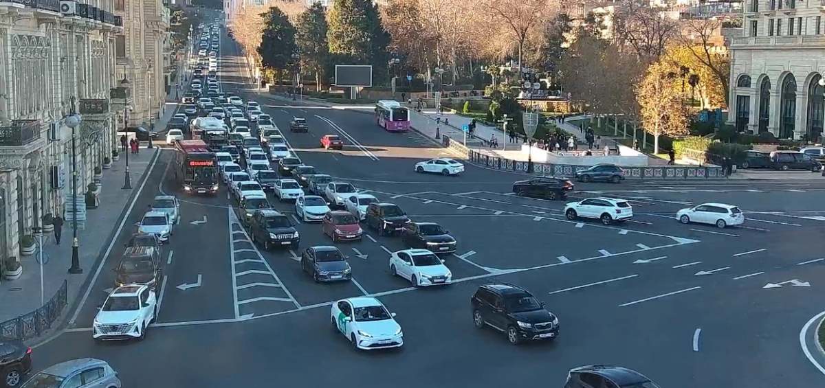 Bakının bir sıra yollarında nəqliyyatın hərəkətində sıxlıq yaranıb.