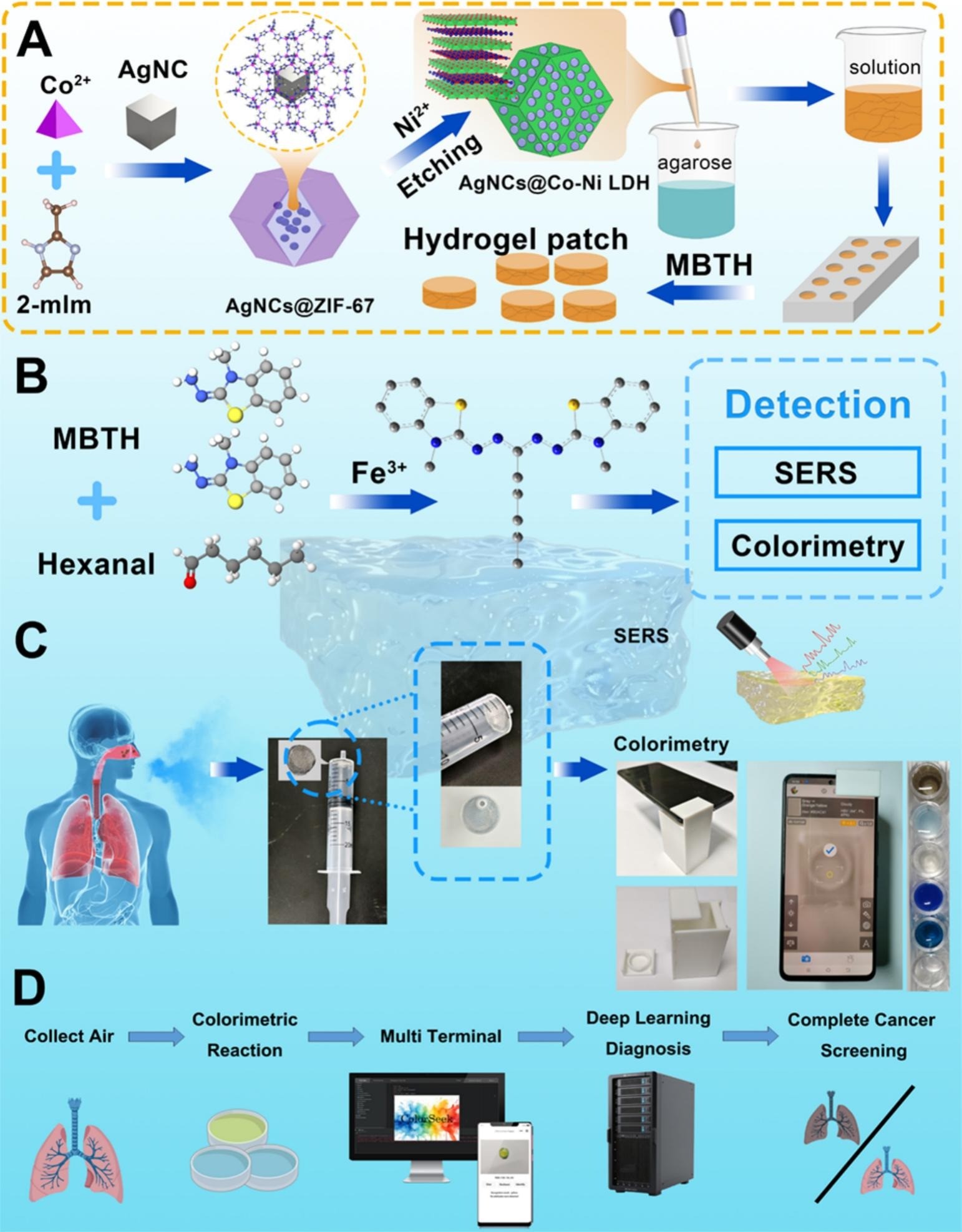 EmpaTV xəbər verir ki, o, Çin və Varşava texnologiya universitetlərinin tədqiqatçıları ilə birgə xəstəliyin etibarlı biomarkeri hesab olunan hexanal maddəsinin aşkarlanmasını mümkün edən yüksək həssaslıqlı dual-mode biosensor hazırlayıb. Bu innovativ yanaşma ağciyər xərçənginin erkən mərhələdə qeyri-invaziv üsullarla müəyyənləşdirilməsinə yönələn "breathomics" adlı müasir elmi istiqamətin inkişafına əhəmiyyətli töhfə verir. Biosensor hexanal maddəsinə məruz qaldıqda, həm güclü Raman siqnalı verir, həm də mavi rəng alır ki, bu da laborator cihazlarla və adi gözlə aşkarlanmanı mümkün edir. Aparılan testlər nəticəsində biosensorun yüksək həssaslıq, selektivlik, təkrarlanma və uzunmüddətli sabitlik nümayiş etdirdiyi, həmçinin antibakterial aktivliyə malik olduğu müəyyənləşdirilib.